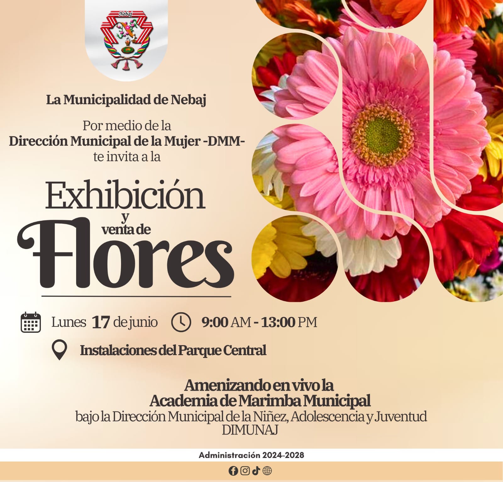 EXHIBICIรN Y VENTA DE FLORES NATURALES. 1 min de lectura Uncategorized EXHIBICIรN Y VENTA DE FLORES NATURALES. Editor Editor 14 junio, 2024 El Sr. Alcalde...Leer mรกs