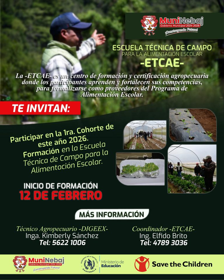 โLa tierra te espera, cultiva tu potencialโ MUNICIPALIDAD DE NEBAJ, MINISTERIO DE EDUCACIรN EXTRAESCOLAR, SAVE THE CHILDREN, TE INVITAN: A...